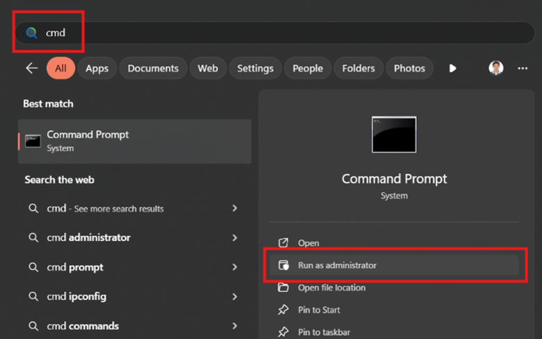 1. Open CMD, run as Administrator.